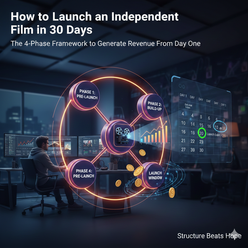 A film that launches in 30 days generates more revenue than a film that sits for 12 months. Not because the film is better — but because the structure is. Uploading is not distribution. Availability is not strategy. A launch is a designed event with a beginning, a peak, and a deliberate end. Independent filmmakers who understand this don't need bigger budgets. They need a framework. The platform is secondary. The launch is primary.